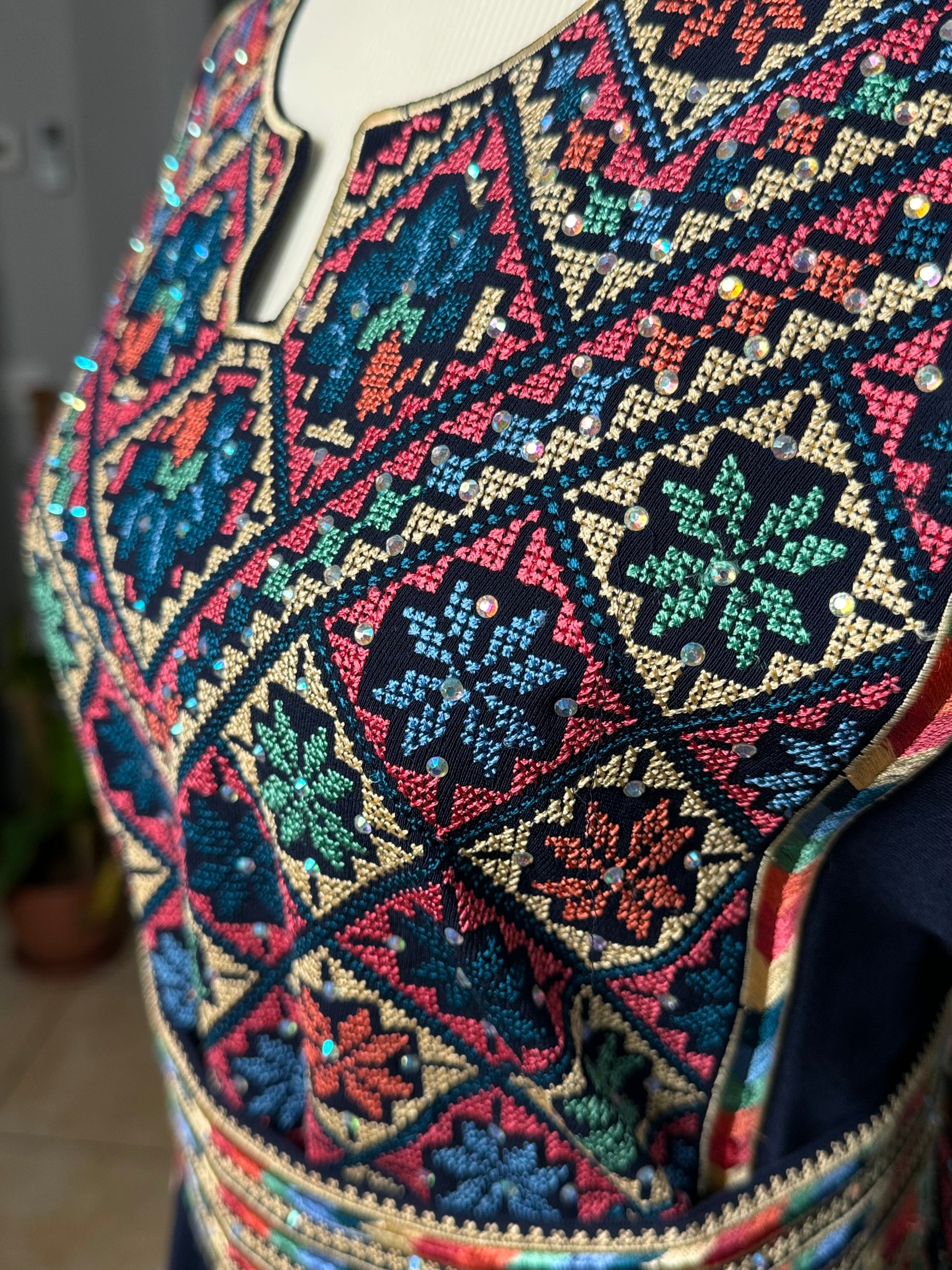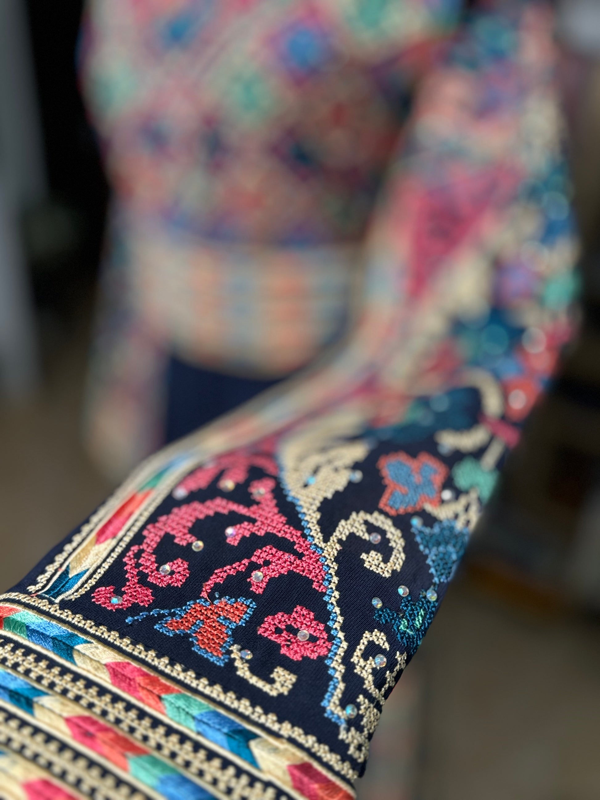 Modello abito “Haifa”, interamente ricamato avanti e dietro.