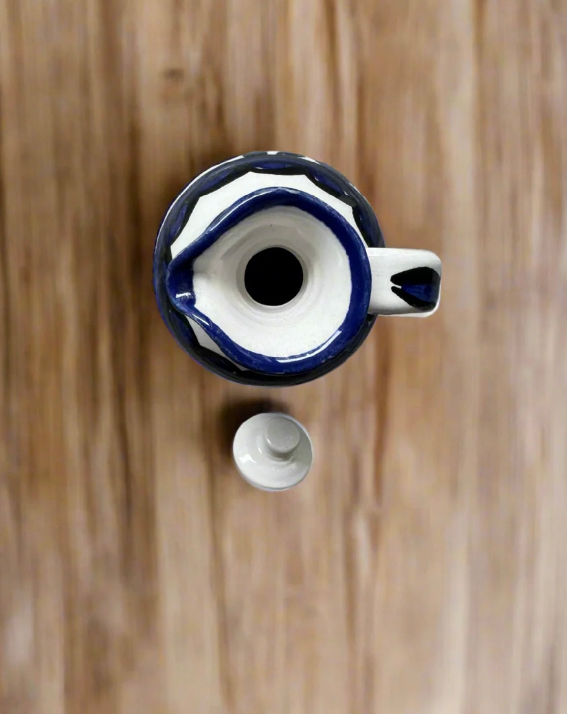 Perfetta per servire e presentare l’olio con stile, è anche un elemento decorativo che porta in casa un frammento di arte mediterranea.