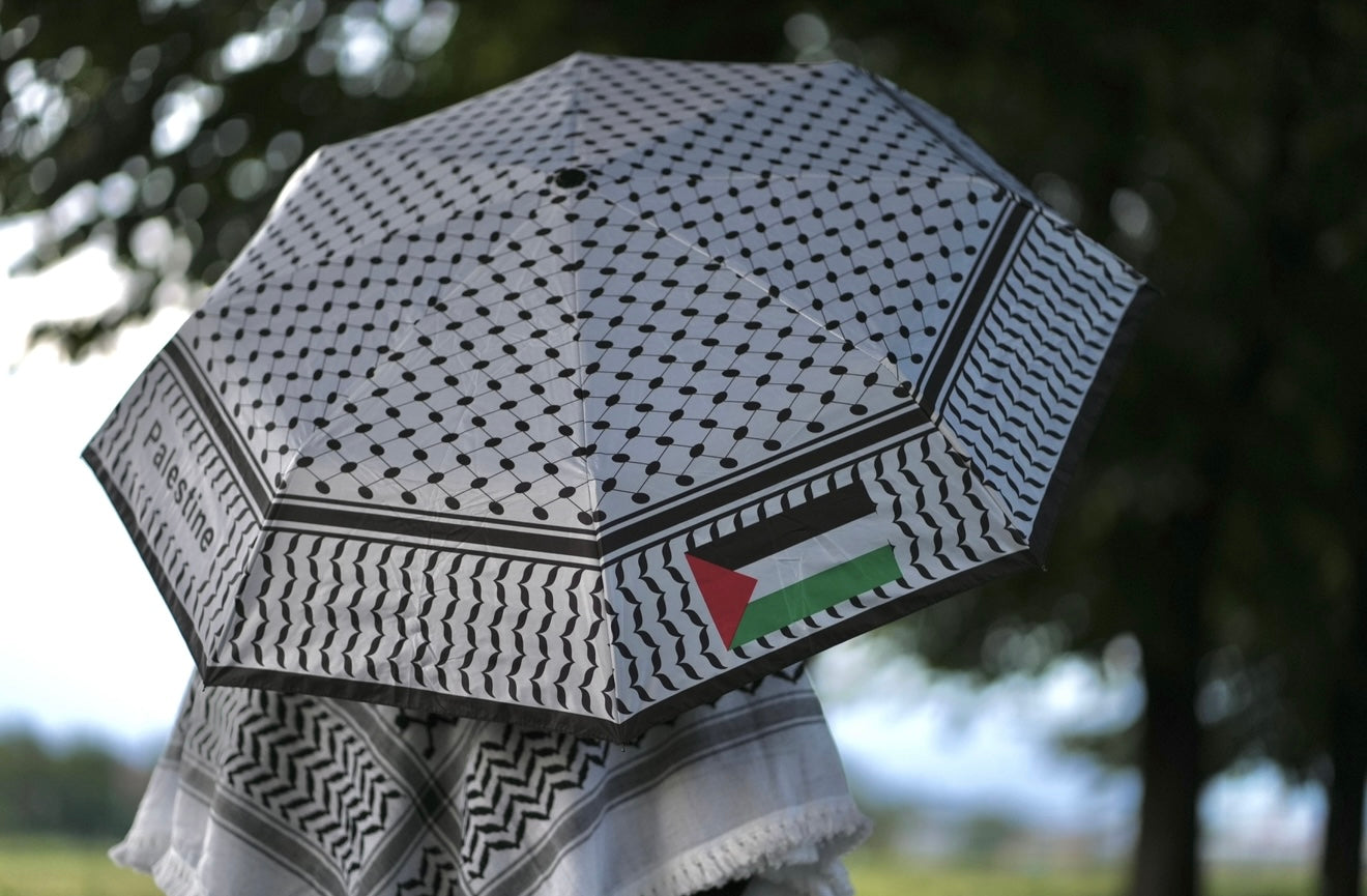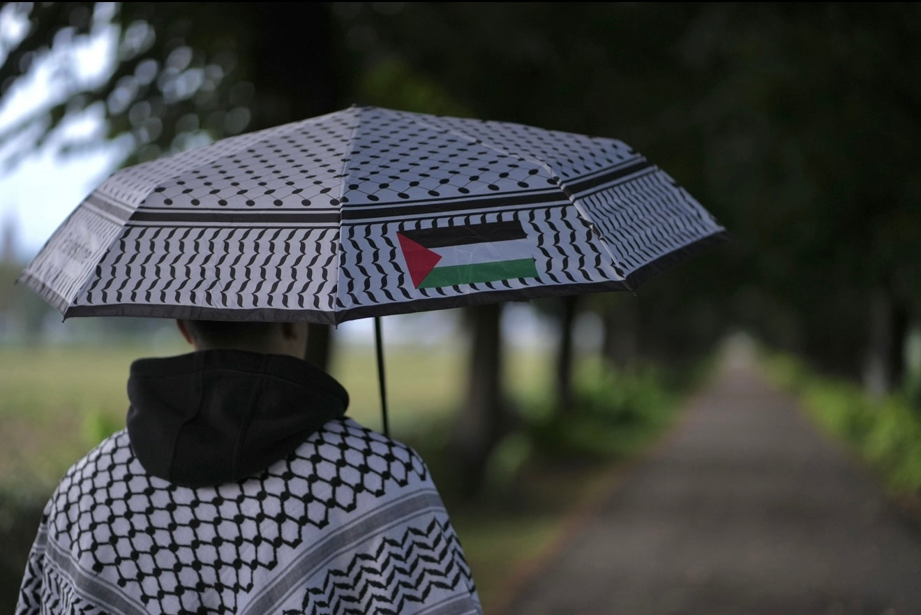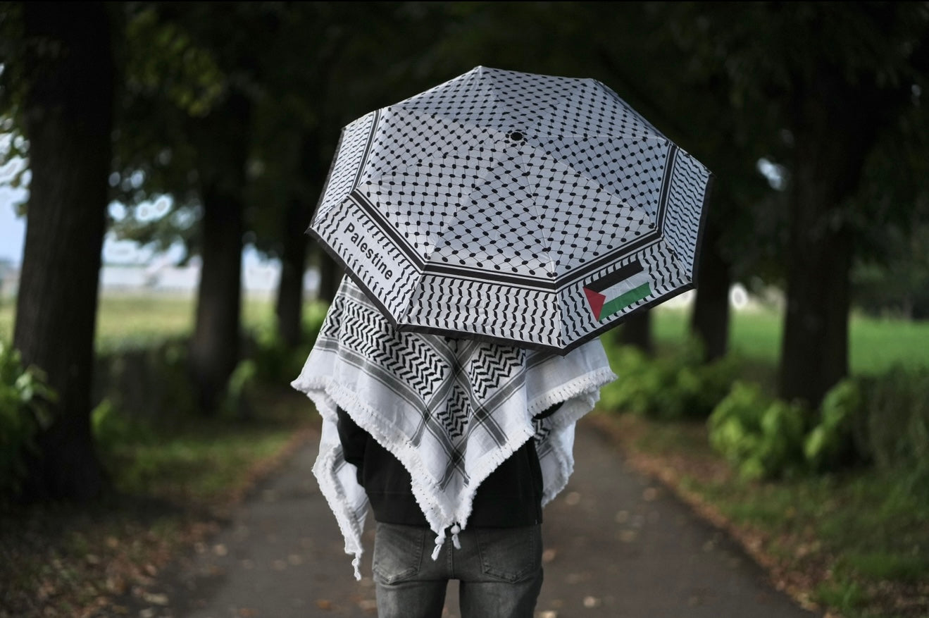 Ombrello 8K personalizzato con la kefiah palestinese.